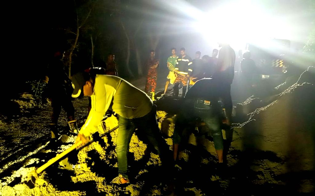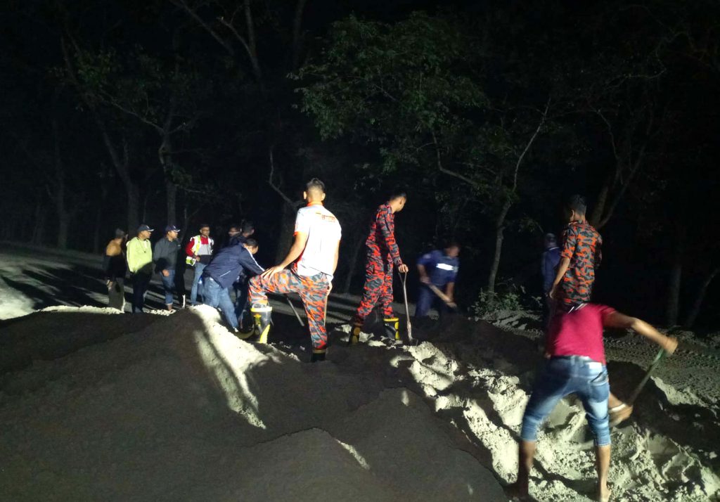 খবর পেয়ে পাকশী হাইওয়ে পুলিশ, ঈশ্বরদী থানা পুলিশ এবং ফায়ার সার্ভিস কর্মীরা ঘটনাস্থলে এসে আগুন নেভান এবং বালু ও গাছ অপসারন করে যান চলাচল স্বাভাবিক করেন।