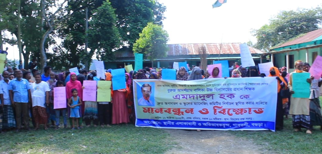 বগুড়ার গাবতলীতে ব্যাপক অনিয়ম, দুর্নীতি ও স্বেচ্ছাচারিতার অভিযোগে এক স্কুলের প্রধান শিক্ষকের অপসারণ ও পরিচালনা কমিটির নির্বাচন স্থগিতের দাবিতে বিক্ষোভ