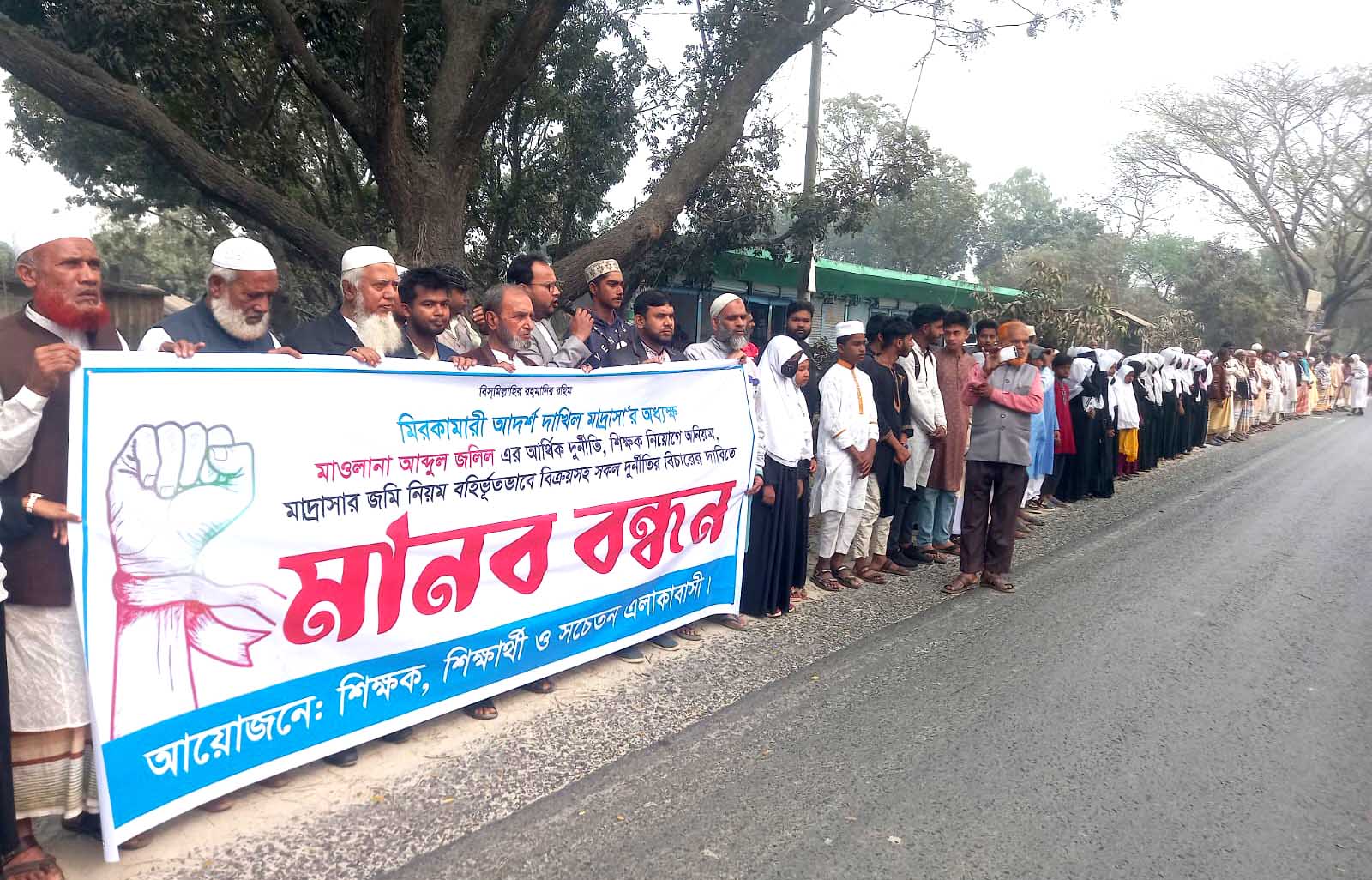 পাবনার ঈশ্বরদীর মিরকামারী আদর্শ দাখিল মাদ্রাসার অধ্যক্ষ আব্দুল জলিলের বিরুদ্ধে বিভিন্ন অনিয়ম দূর্নীতির অভিযোগের বিচারের দাবি ও অধ্যক্ষের অপসারন চেয়ে