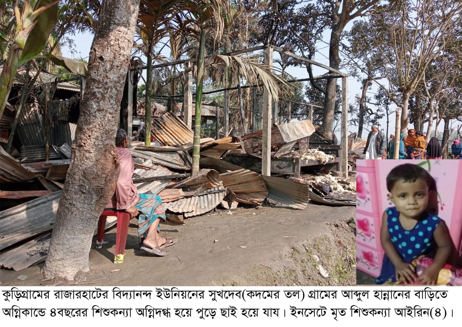 কুড়িগ্রামে আগুনে পুড়ে বাড়ি ভুষ্মিভুত ও শিশু পুড়ে ছাঁই