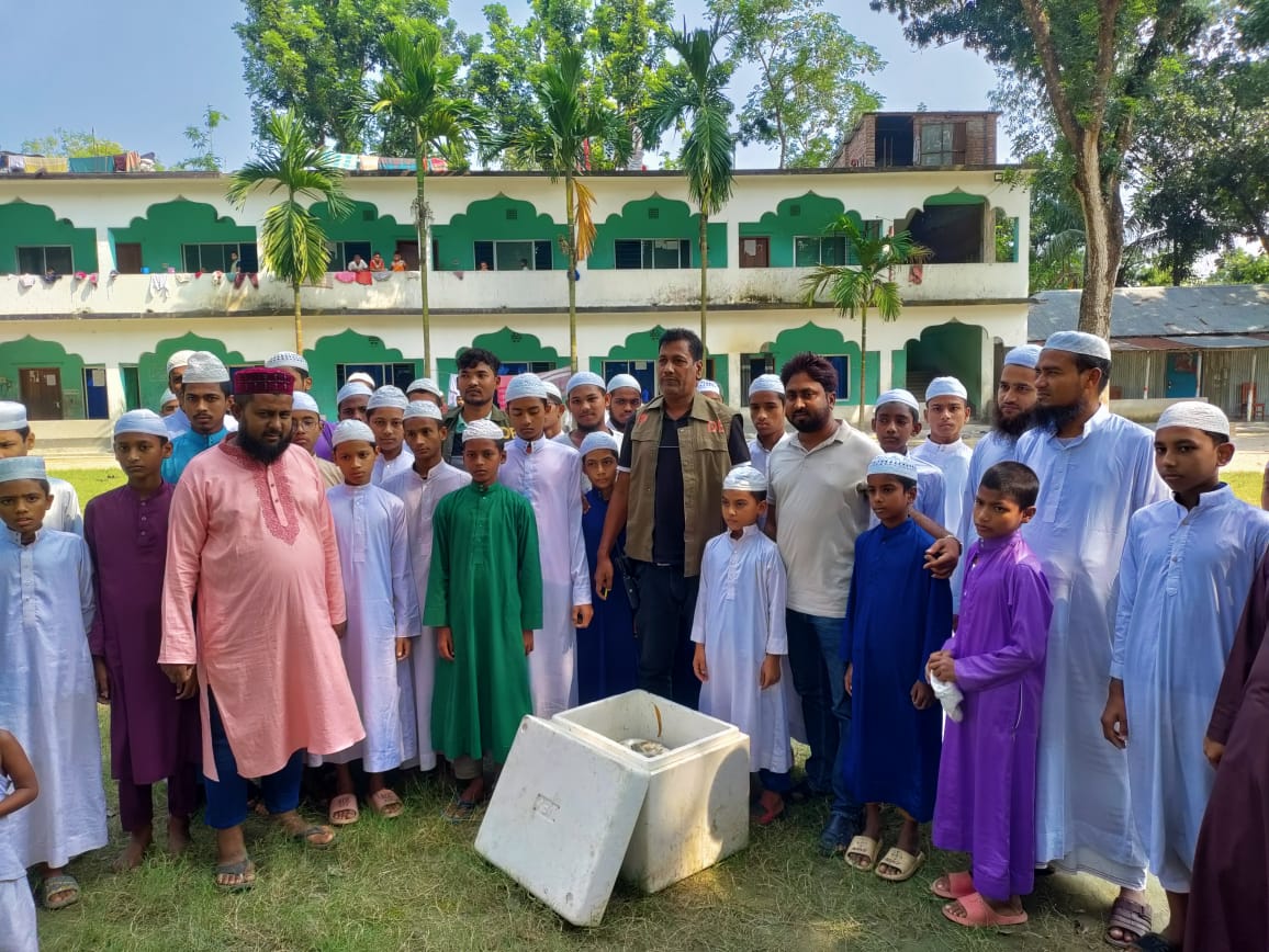 পাবনা জেলা পুলিশ সুপার’র পক্ষ থেকে মাদ্রাসায় জব্দকৃত ইলিশ বিতরণ