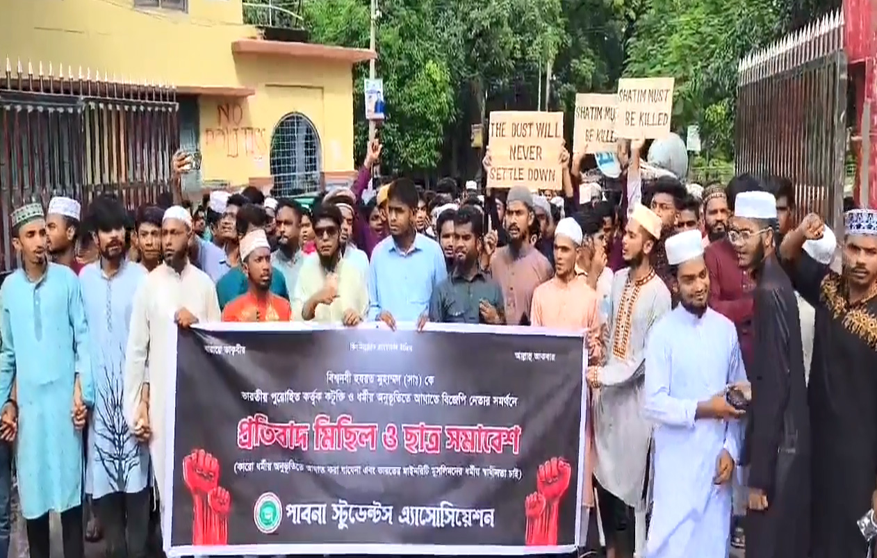 মহানবী হযরত মুহাম্মদ (সা.)কে নিয়ে ভারতীয় পুরোহিতের কটূক্তির প্রতিবাদে পাবনায় বিক্ষোভ মিছিল অনুষ্ঠিত হয়েছে। শুক্রবার দুপুরে পাবনা স্টুডেন্ট এসোসিয়েশনের পক্ষ